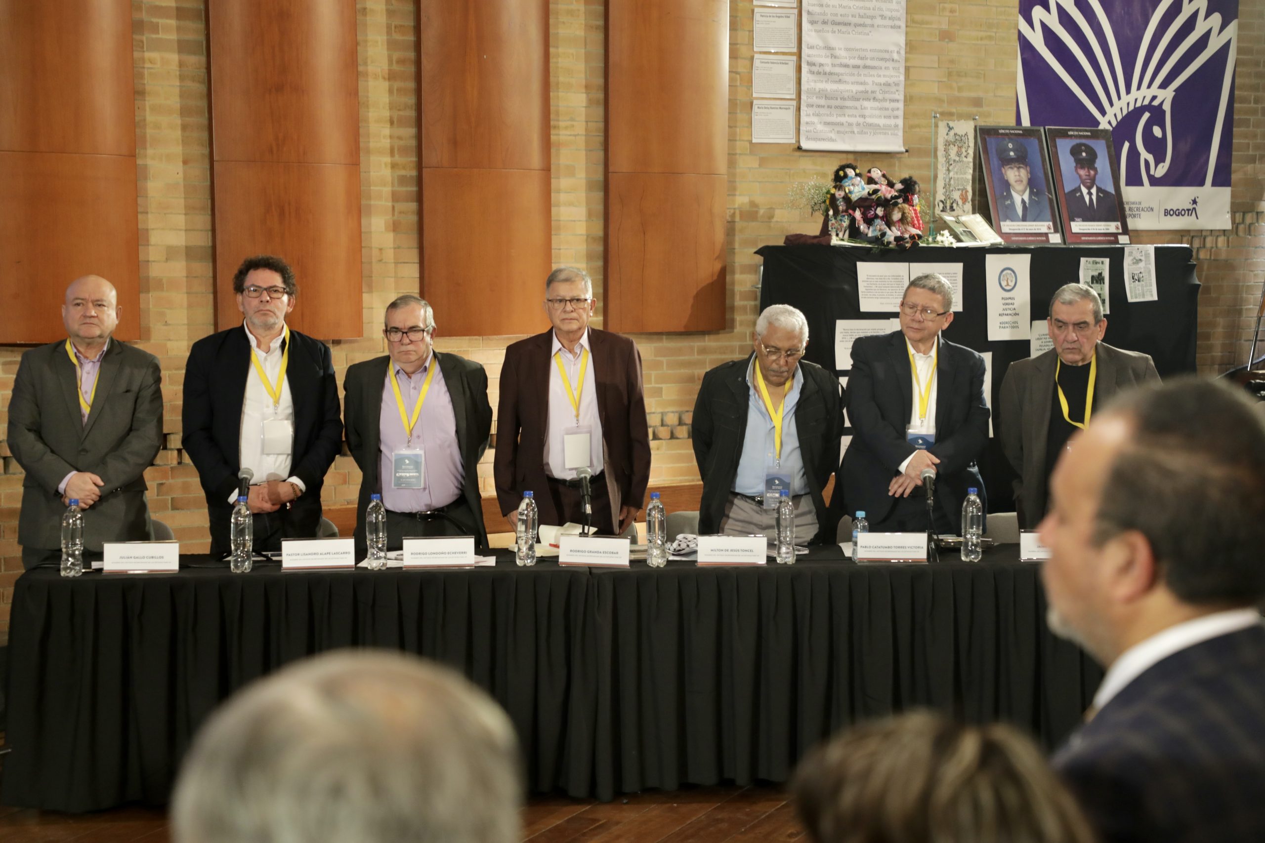 Los exlíderes de la desaparecida guerrilla, Rodrigo Londoño, Pablo Catatumbo, Pastor Alape, Milton Toncel, Jaime Parra, Julián Gallo y Rodrigo Granda, reconocieron que las sanciones propias son un mandato de la justicia para la paz y también un compromiso ético y político con las víctimas y con el país. Foto Cortesía JEP