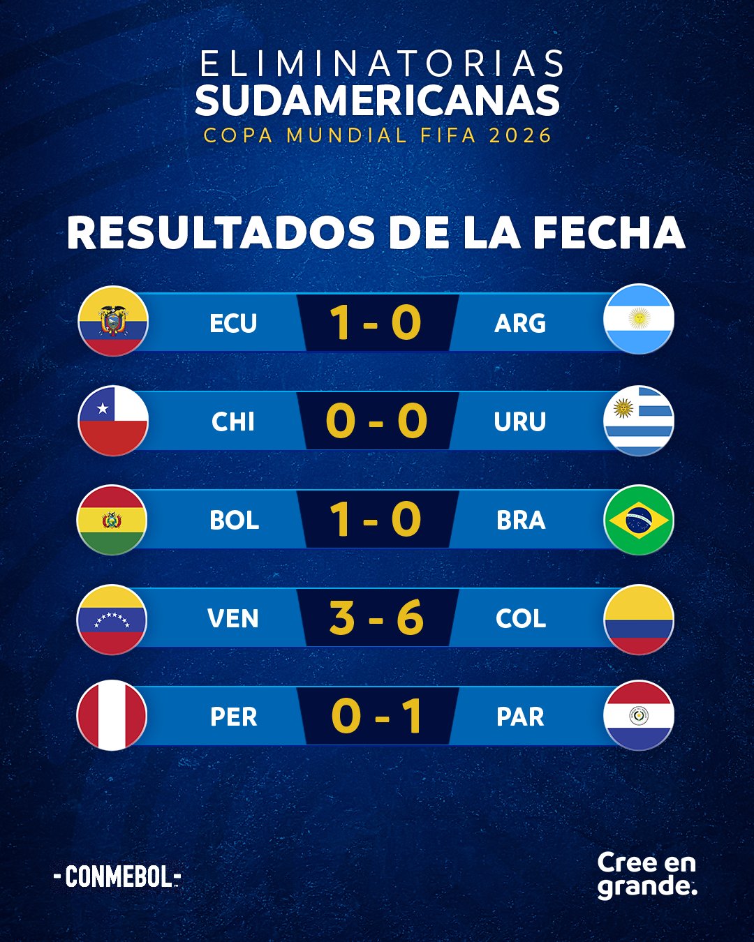 Venezuela, por su parte, quedó eliminada del Mundial 2026 con 18 puntos