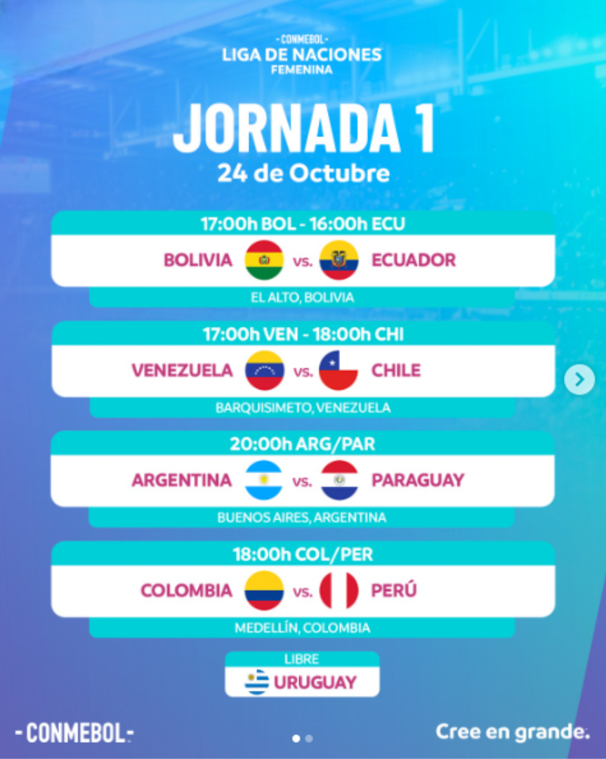 La CONMEBOL da un nuevo paso en el fortalecimiento y desarrollo del fútbol femenino sudamericano. Este viernes 24 de octubre inicia la primera edición de la CONMEBOL Liga de Naciones Femenina, competencia que servirá como camino clasificatorio hacia la Copa Mundial Femenina de la FIFA 2027.