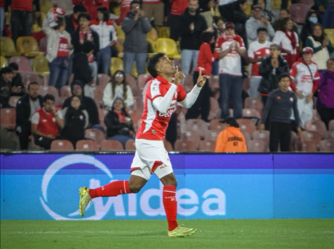 El gol de Santa Fe ante Águilas Doradas fue anotado por Christian Mafía en el minuto 49 del segundo tiempo. @SantaFe
